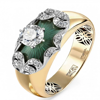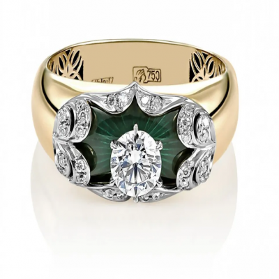 первая страница > Ювелирные изделия > Ориенталь - Кольцо из желтого золота 750 пробы с бриллиантами и эмалью
