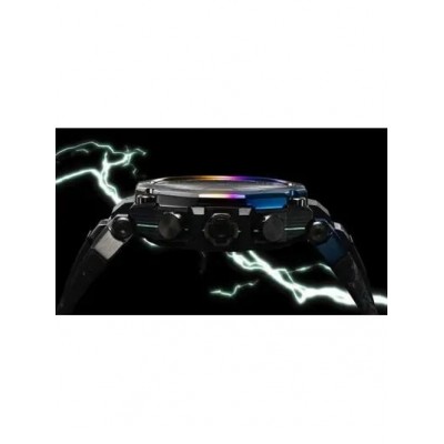 Цветной безель выполнен из ламинированных листов углеродного волокна и стекловолокна. Функции поиска телефона и перемещения стрелок для беспрепятственного просмотра информации. Завинчивающаяся заводная головка с защитой. Полупрозрачный ремешок с классической застежкой.